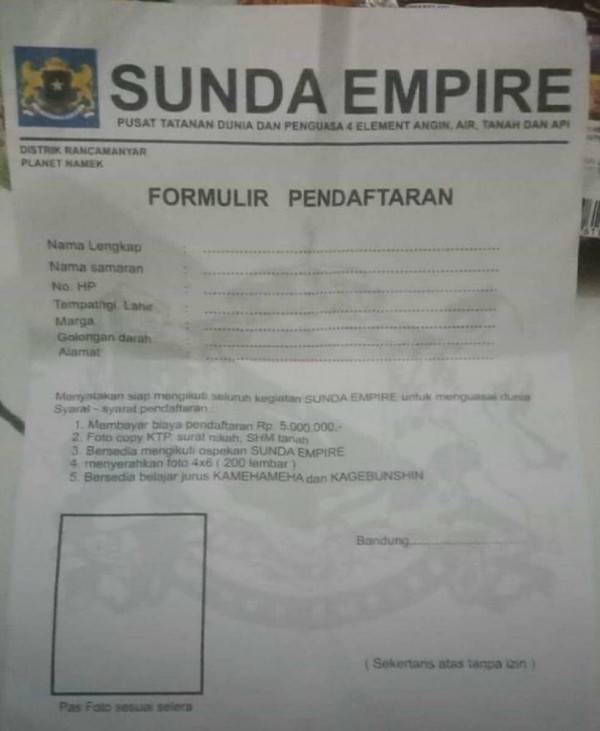 Netizenpun berbondong bondong membuat meme lucu sunda empire ini yang merupakan sebuah organisasi atau kerajaan fiktif tsb. Tetapi semenjak rangga pentolan sunda empire muncul ke permukaan dan diberi panggung oleh banyak stasiun telev. Mimin sudah mengumpulkan nih 11 meme lucu sunda empire yang dijamin bikin ngakak. Ketiganya yakni perdana menteri sunda empire nasri banks kaisar sunda empire raden ratna ningrum dan raden rangga selaku sekjen. Kalau tidak ada sunda empire earth empire indonesia akan habis negara ini ujar ki ageng rangga sasana. Meme sunda empire. Awalnya polda jabar hanya menghadirkan grand prime minister of sunda empire nasri banks dan kaisar sunda empire raden ratna ningrum dalam jumpa pers di mapolda jabar selasa 28 1 2020.