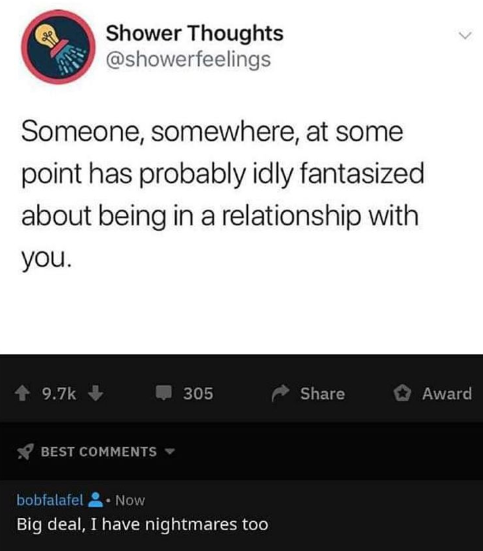 Shower thoughts weird thoughts meme. 30 shower thoughts you ve never realized before funny memes that get it and want you to too. See more ideas about thoughts shower this or that questions. May 29 2019 explore hoss s board stupid shower thoughts on pinterest. May 22 2020 explore maddharvey s board shower thoughts on pinterest. See more ideas about funny memes relatable funny quotes. See more ideas about mind blowing thoughts thoughts funny deep thoughts. On reddit users share their shower thoughts on a subreddit called appropriately r showerthoughts.