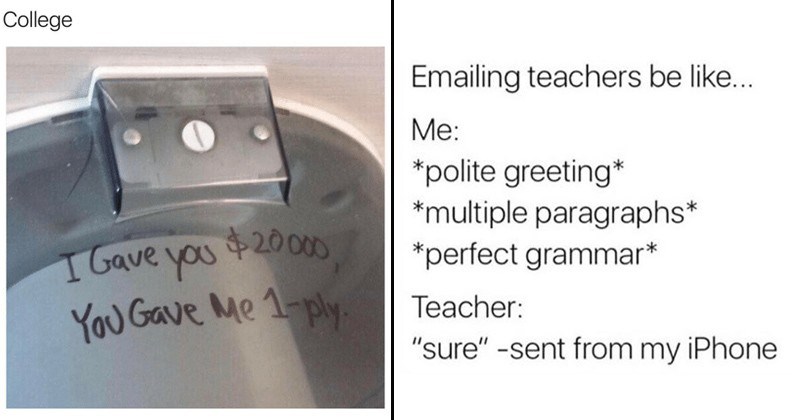 Student memes college memes. The college meme groups normally chronicle the life of students on the campuses. Luckily college students are always happy to satirize their institutions of higher learning as these hilarious college memes demonstrate. Buzzfeed staff australia 1. College memes for the students who should be studying if you re currently in college then you probably often hear your parents say that college is easy compared to the real world while we d have to agree that that is true we do also understand how horrible it is to study for exams and do homework every day. Just 100 hilarious memes for anyone who s gone to university. These college quotes about being a broke student depict the funniest and most. And the struggle is real.